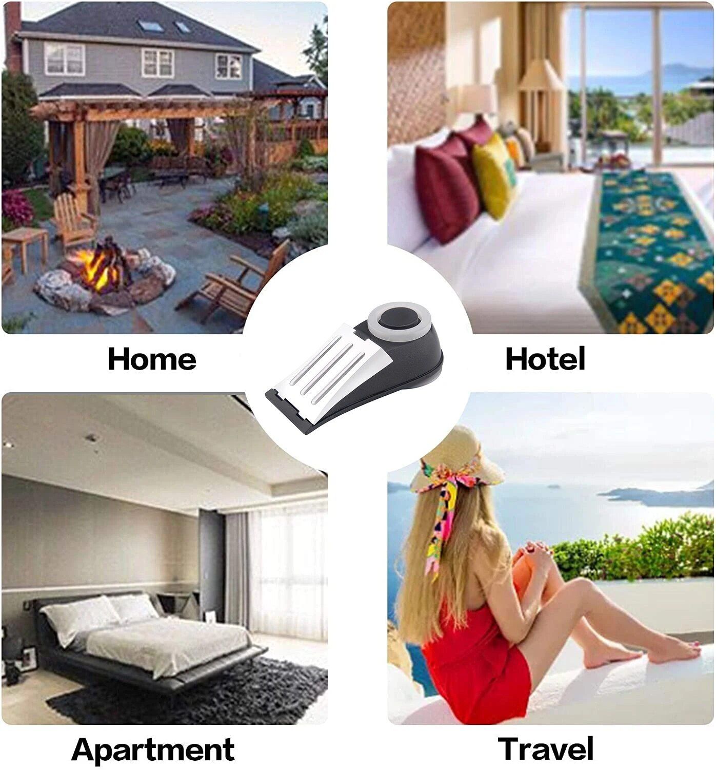 - Door Resistance Feature: Position the sharp end in the door-floor gap, press down to secure the suction cup. External attempts to open the door are rendered futile, triggering the alarm.