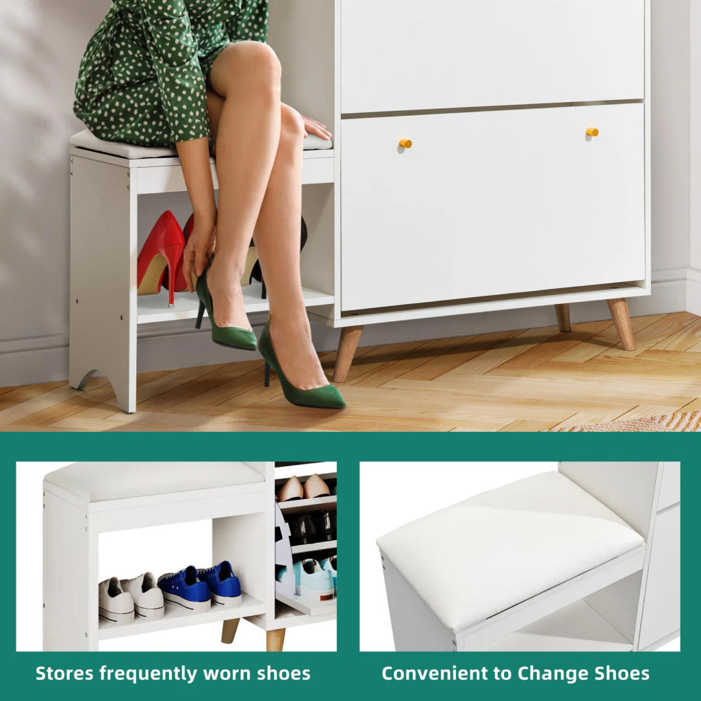 - Space-Saving Design: Equipped with 3 flip drawers and a top shelf, our shoe cabinet maximizes storage space, accommodating 29-38 pairs of shoes.